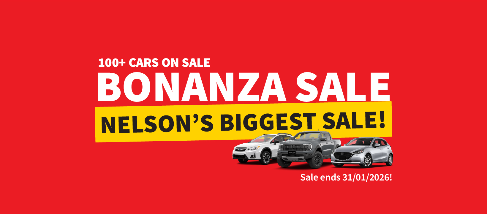 The Car Company Nelson's, New Year Bonanza Sale is on! This is the biggest used car sale in the top of the South Island. We have a